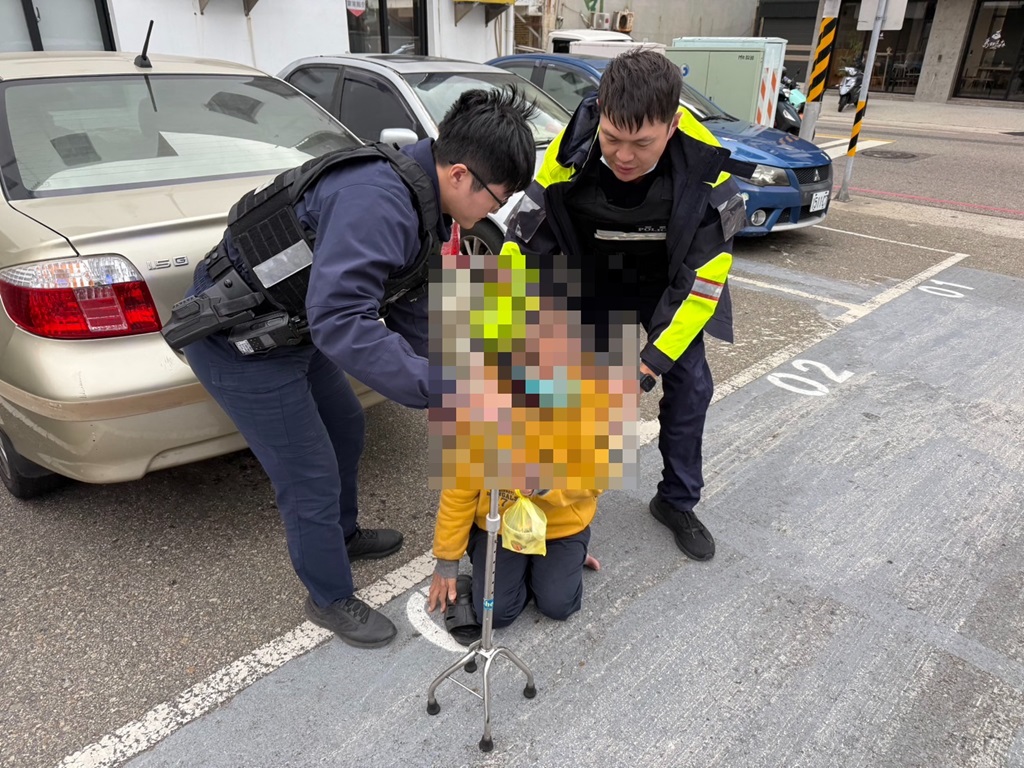 經林員詢問後發現該男子領有身障手冊,需靠輔助器行走。本日為外出購物,但因寒流來襲,強風猛吹導致其體力不支而倒下,林員扶起男子後,隨即請其至巡邏車內避風取暖,並細心詢問身體狀況與住處。