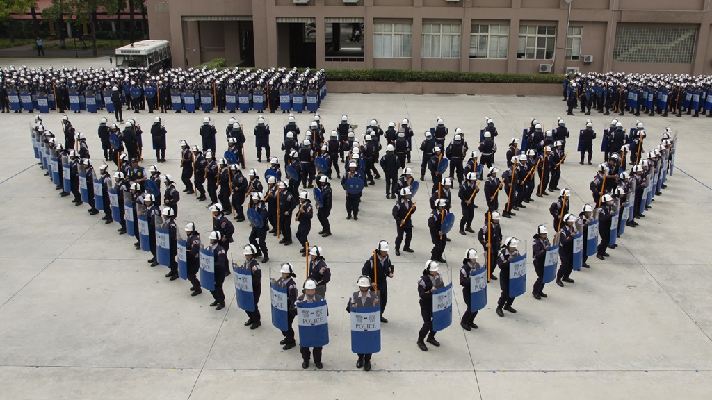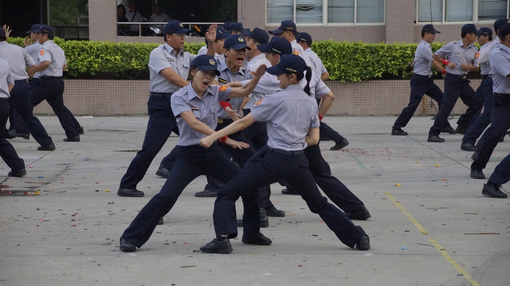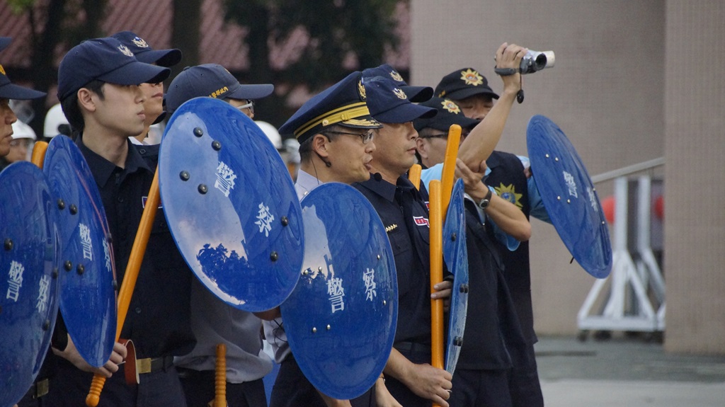 答覆:示範觀摩演練過程,涵蓋了整個陳情抗爭中,警察處理過程的整個法律程序及動作。包括靜坐抗議群眾的勸離、架離、驅散及逮捕。或者對陳抗群眾,聚眾喧囂、擾亂治安的違法行為所實施的警告,命令解散、制止的法律程序。並展現警察在處理過程中所需的技巧及各種隊形如列陣、前進楔形、二線隊、三面防衛等隊形的操作、保安裝備阻材架設(鐵馬護欄、鐵拒馬、蛇腹型鐵絲網車)、特種車輛操作運用(高壓噴水車、強力照明車),整個流程的演練完全精實顯現保五總隊高昂精神、士氣及技術的精湛。