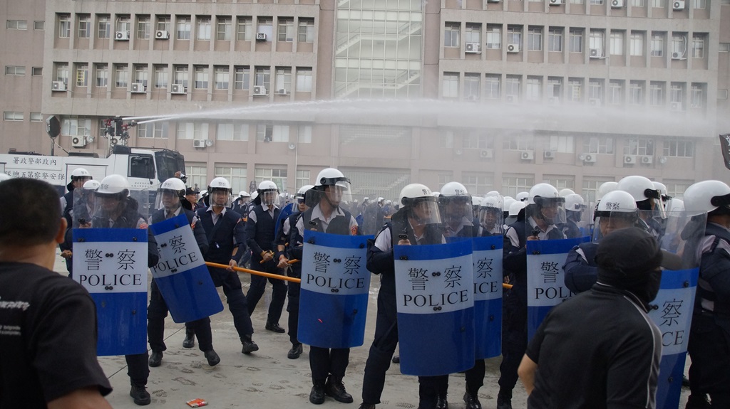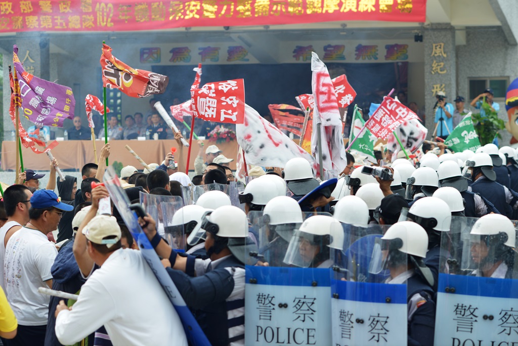附註:陳泰安科長當時以英文宣達警察維護陳抗現場秩序的程序用詞 — Dear my fellows,I am the field commander.We will show our respect on whatever you like to express,but you don't sit-in on the road without applyling in advance.In order to protect the rights of the road users,you are asked to leave right now,Thank you for your cooperation.(親愛的同伴們,我是現場指揮官,你們想表達什麼我們都會尊重,但是請不要在沒有提前申請的情況下在路上靜坐。為了保護道路使用者的權利,請你們立刻離開,謝謝你們的配合。)