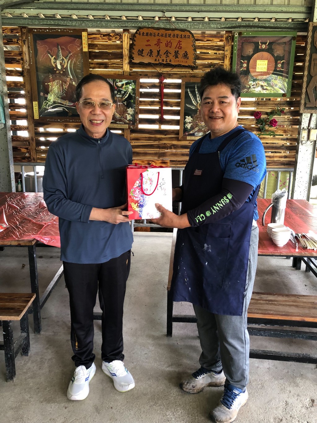 附註:《警友之歌》歌詞:我們是熱情的國民,伸展正義的警友團,結合社會大眾的力量,不管白天或夜晚,不怕狂風或暴雨,為民除害是大家的責任。手牽手、心連心,警民本是同根生,大家團結一條心,讓我們生活在這安享溫暖的家園,因為我們都是一家人。尤宗貴(阿浪)於108年退休後,於故鄉屏東牡丹開設「二哥的店」,其醃製的美味滷味與原住民料理好名聲響徹雲霄。