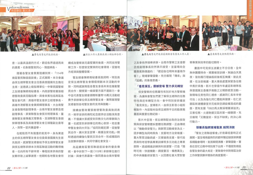一、聯誼與情誼:「114年南區警民聯誼活動(上/下)」文章細膩捕捉警民互動的溫馨瞬間,展現警民一家親的融洽氛圍。