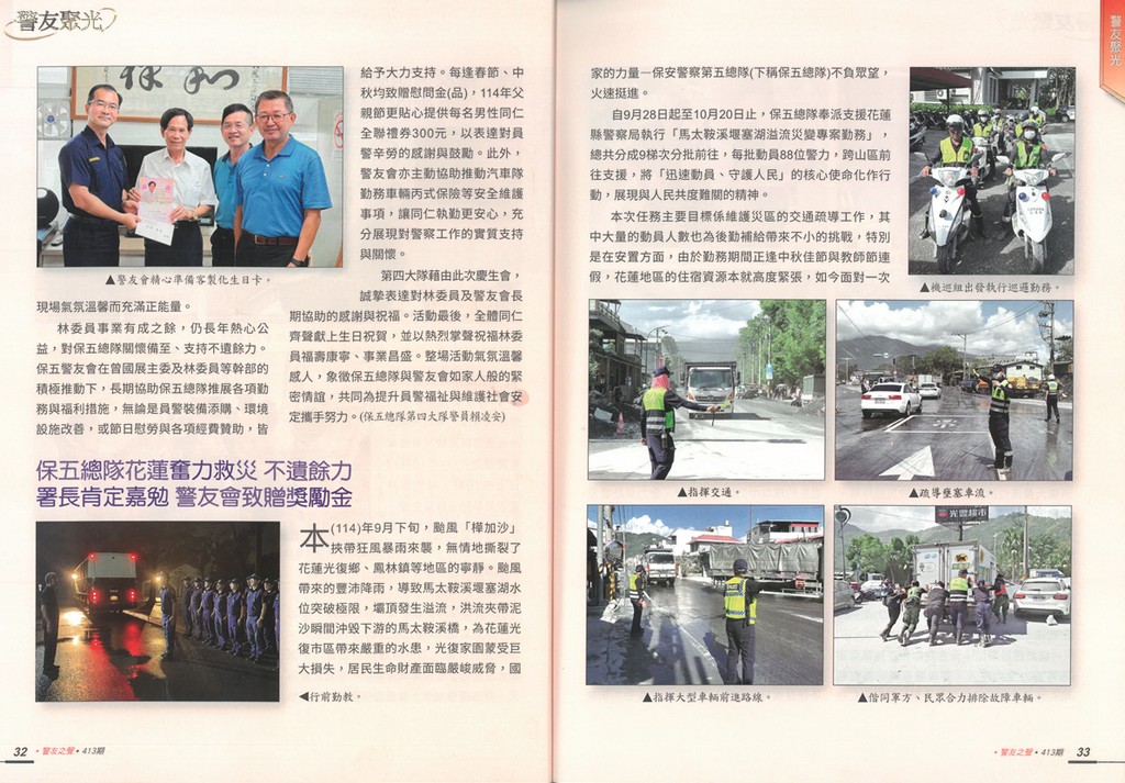 恭賀!本總隊同仁江佳蕙、賴凌安、沈倢如以卓越的筆力和深入的觀察,成功讓四篇文章榮獲《警友之聲》雜誌的青睞與刊登。這不僅是撰稿人的榮耀,更是對保五的最佳肯定!