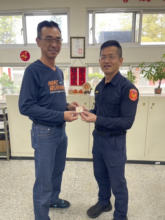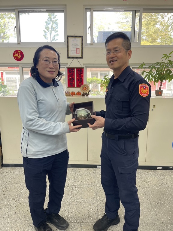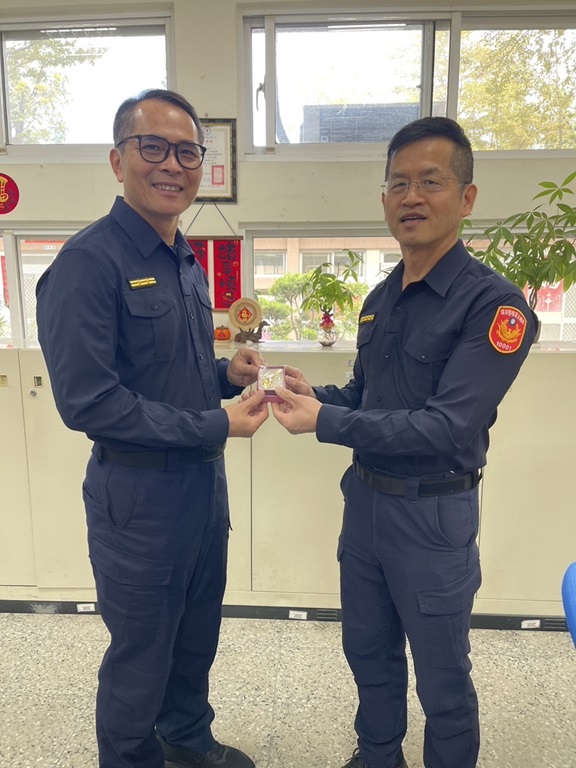 為感念學長姊們將最精華的青春歲月奉獻給這套制服,本總隊特別準備「紀念金鏟子」,並由大隊長洪政一代表致贈,另大隊亦贈精美馬克杯禮品。這份賀禮不僅象徵對過去多年無私奉獻的肯定,更寓意著為前輩們開啟退休後「金」彩奪目的嶄新人生。