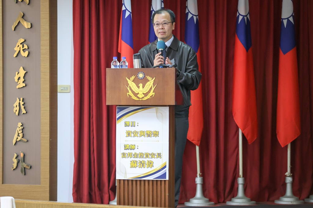 為提升同仁科技素養並掌握最新犯罪趨勢,本總隊於1月27日邀請富邦金控資安長蘇清偉蒞臨演講。蘇資安長曾歷任警政署資訊室主任、刑事局數位鑑識組組長等,具備深厚的刑事偵查與資安管理經驗,此次以「資安與警察、AI防詐及科技警察的未來」為主題,為同仁帶來一場精彩的知識饗宴。
