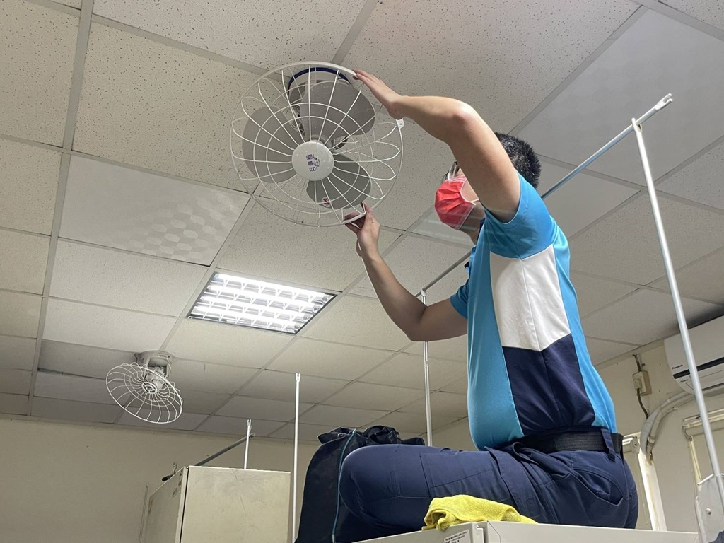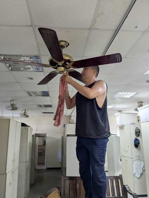 本次行動針對平日容易忽略的死角進行澈底洗禮,同仁們捲起袖子,從冷氣濾網的積塵、電風扇葉片的陳垢,到門框溝槽、紗窗灰塵,無一不細心刷洗與擦拭。