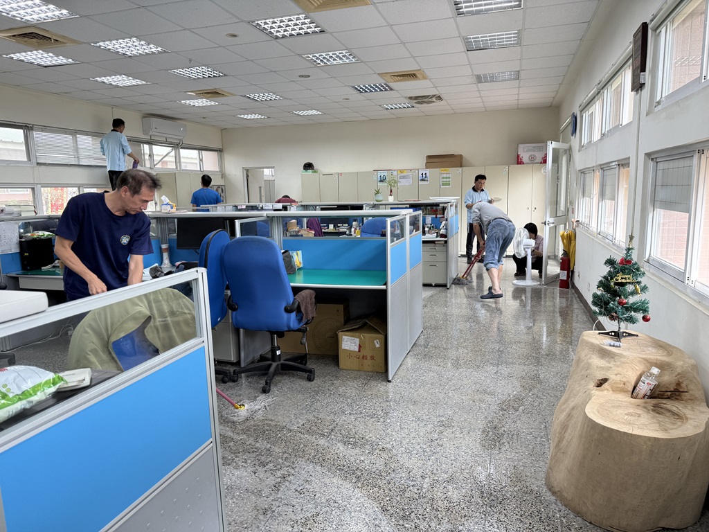 在大家分工合作的努力下,無論是繁忙的辦公室、溫馨的寢室,還是頻繁使用的公共區域,皆已全面清潔完畢。這場「掃除總動員」不僅營造出更為舒適的生活與工作空間,更在共同揮汗的過程中,展現了第一大隊堅實的團隊凝聚力。現在環境已煥然一新,讓我們以「Happy So 馬取」的心情,迎接新年的每一項挑戰!