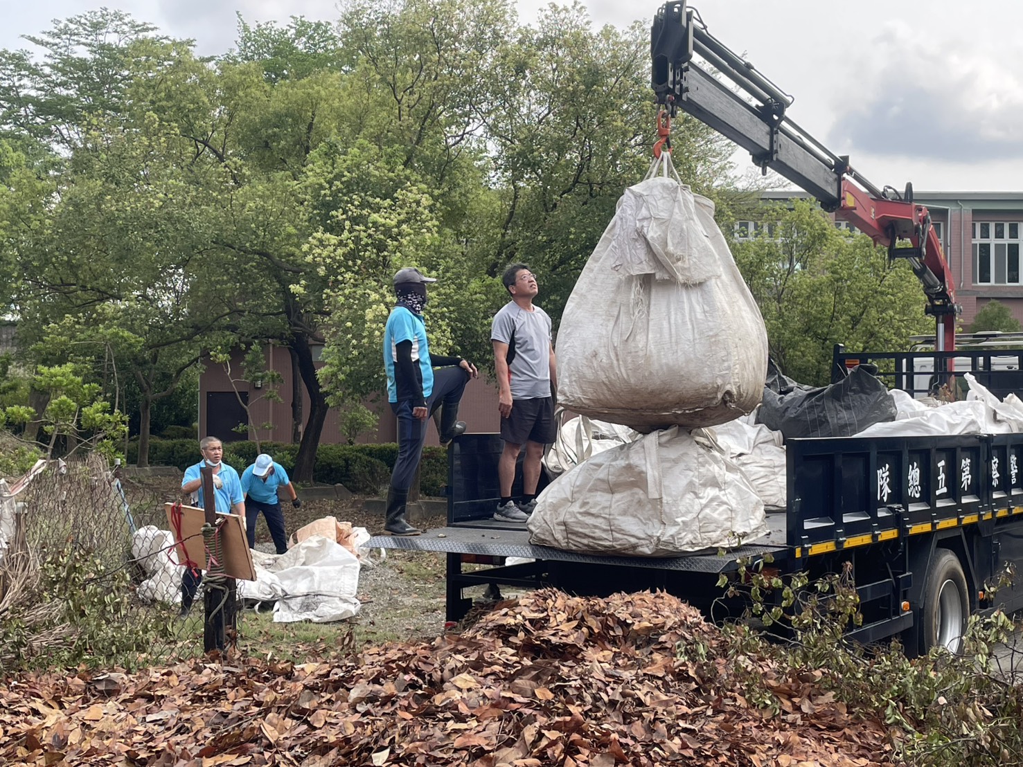 本總隊第一大隊第一中隊因應梅雨季將近,發起各項環境整潔行動及植栽種植,落實清淨家園、守護生活品質。分工清掃圍牆周邊落葉並整理環境,減少積水、抑制病媒蚊孳生。派遣11名員警(含汽車隊3名)及1輛吊車,將園區西北角約60袋落葉太空包分批吊運至東南角指定堆置場,歷經3趟運輸、耗時約3小時20分鐘完成。同仁齊心協力、不畏悶熱,展現團隊精神。本次行動不僅改善環境品質、降低蚊蟲孳生風險,也為梅雨季做好準備,並凝聚團隊向心力。