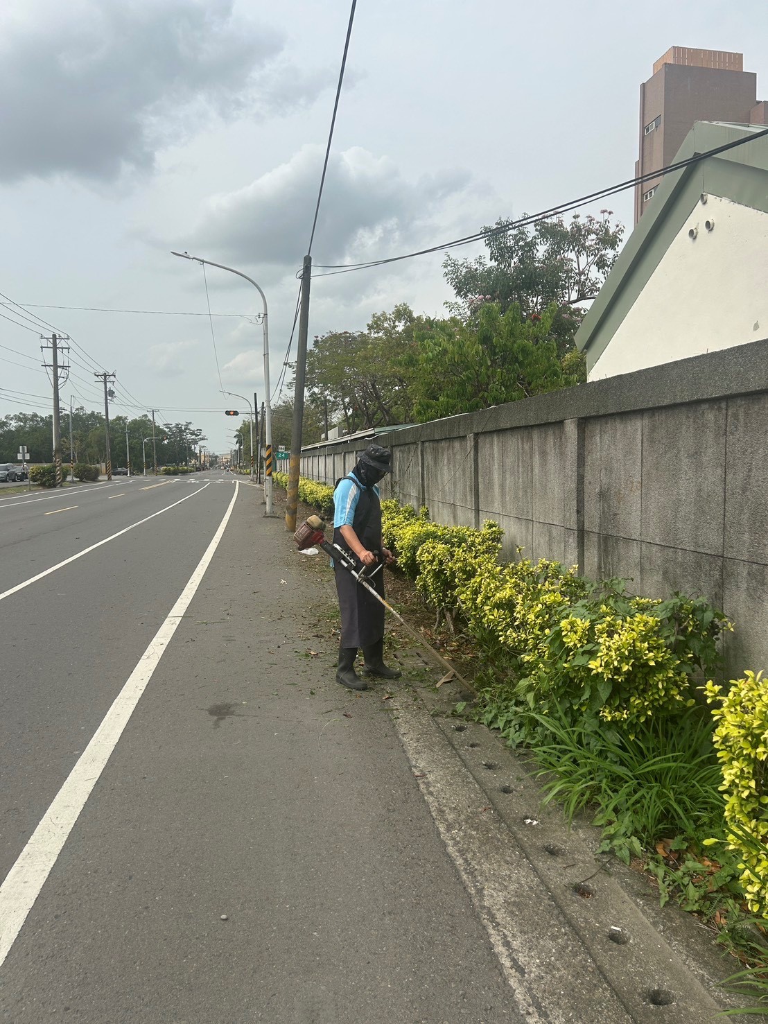 本總隊南側圍牆外面為中正路436巷口,是仁武里民經常出入的道路,4月上旬一場春雨過後,道路兩旁雜草叢生,影響水溝排水功能及用路人視線,保五同仁於美化環境區域的同時,順道將該巷口綿延數百公尺雜草割除,讓民眾出入安全,也增進良好的「警民關係」及「敦親睦鄰」。