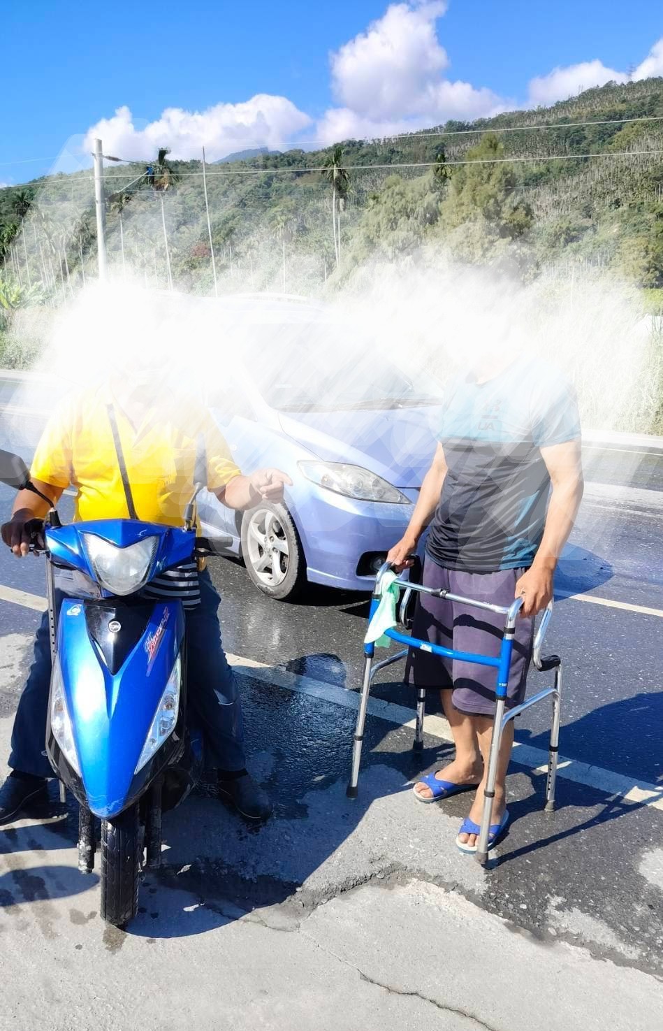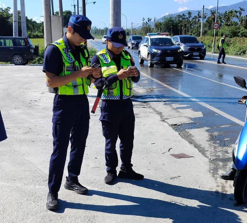 本總隊二大二中警員楊桂芬於114年10月15日支援花蓮縣警察局專案勤務擔服交通勤務時,在中山路一段與民治街口,發現一起自小客車擦撞機車事故。楊員立即通報分局並於現場進行交通疏導。線上警力於接獲通報後10分鐘內,迅速抵達現場接手處理。