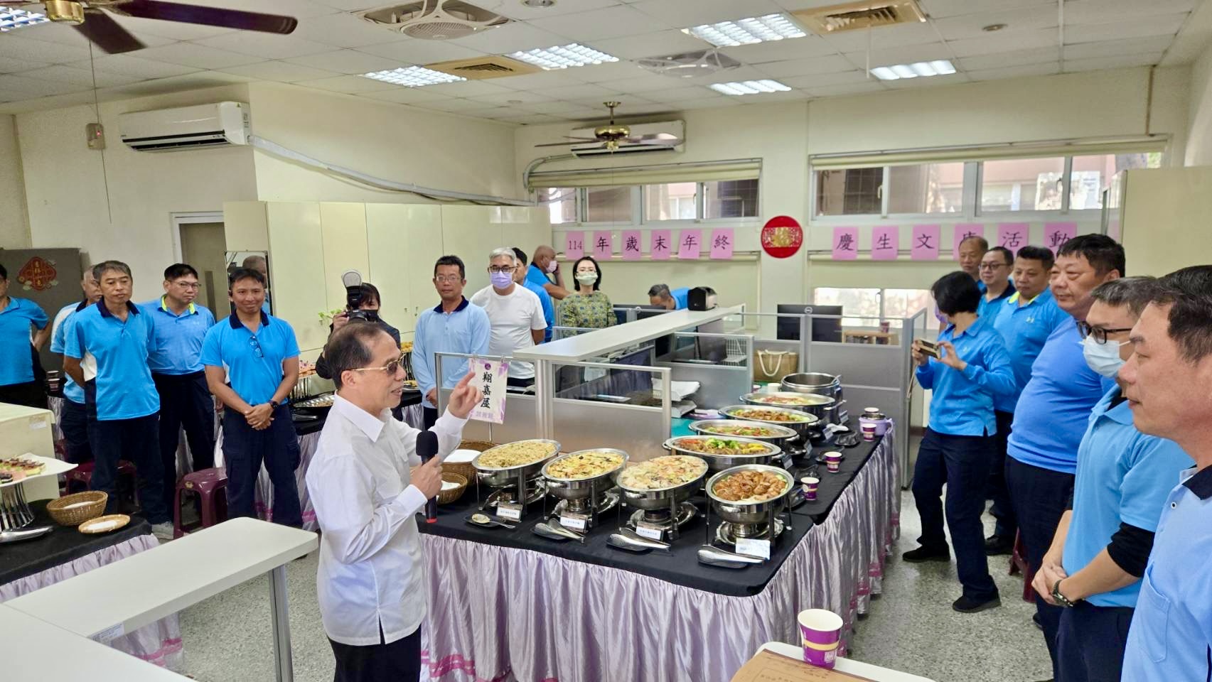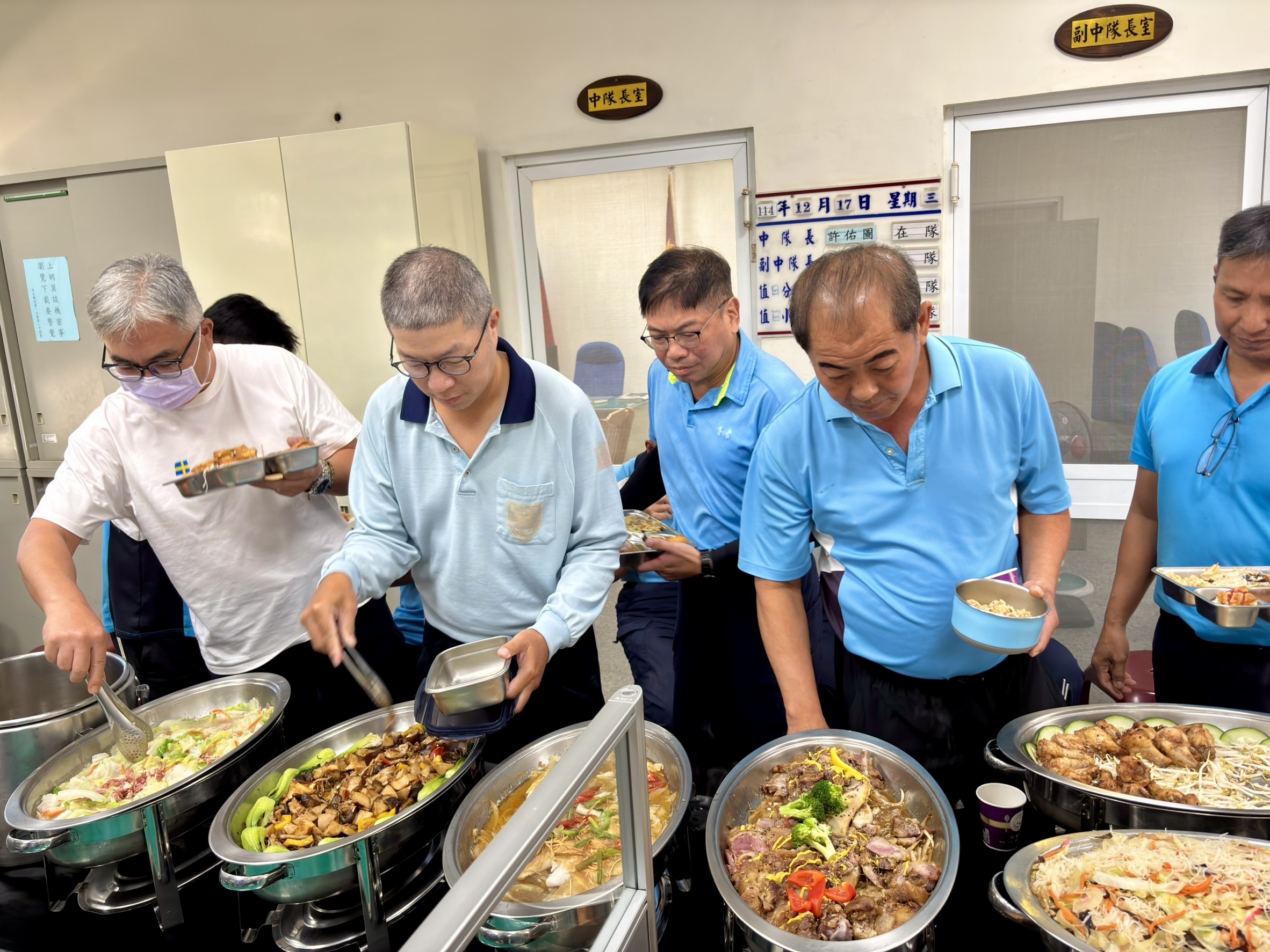 為犒賞同仁整年辛勞,本總隊第一大隊第一中隊於12月17日盛大舉辦「歲末年終感恩茶會活動」。茶會特別聘請優質外燴業者在隊部準備豐盛佳餚,並榮幸邀請到保五大家長—總隊長盧廷彰及洪大隊長蒞臨,與同仁齊聚一堂,共享溫馨的用餐時光。