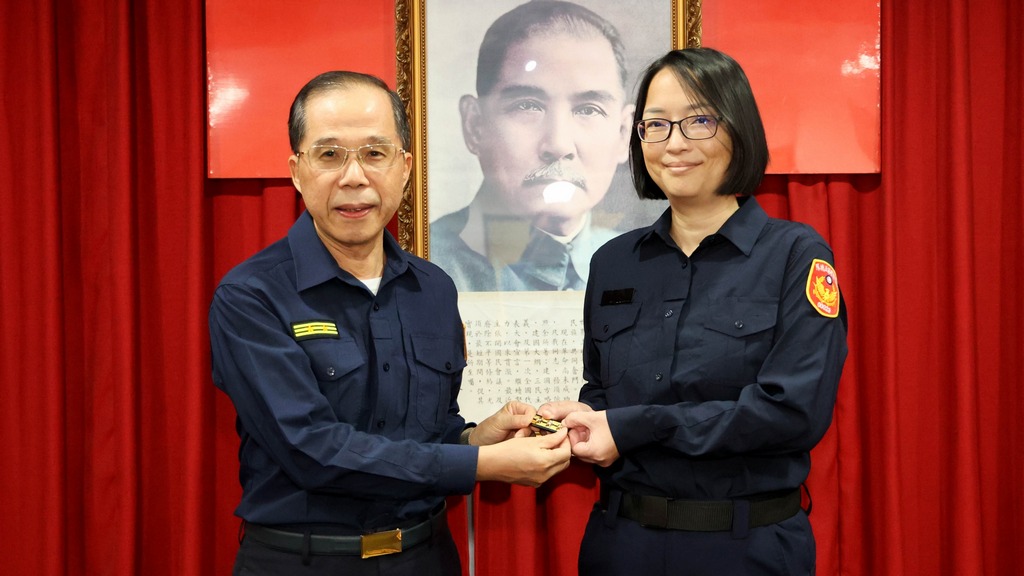 盧總隊長廷彰於授階儀式中,親自授予楊警務正象徵榮譽與責任的新階級章,這不只代表身份轉換,更是對歲月的致敬,與對未來的期盼。