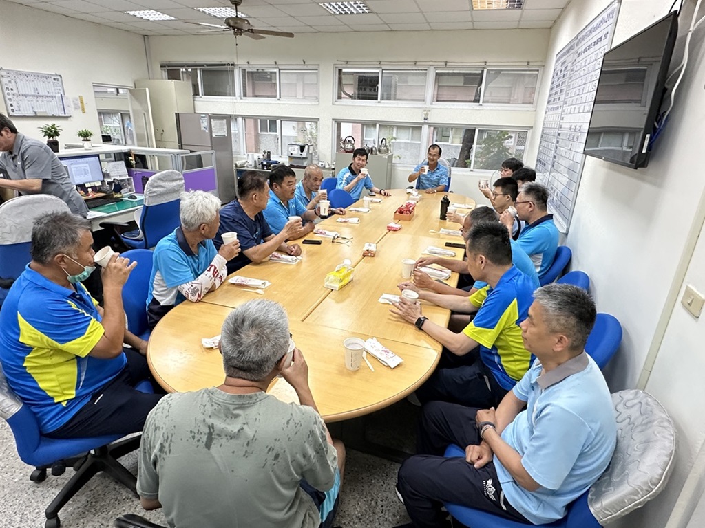本大隊持續關注同仁用餐需求與回饋,為感謝辦伙同仁辦伙的辛勞與付出,第四大隊大隊長張昱辰於115年4月1日舉辦慰勞茶會,親自表達感謝並傾聽建言,期勉持續以用心與熱忱,將每一份餐食化為支持同仁的力量,共同營造更溫暖的工作環境。
